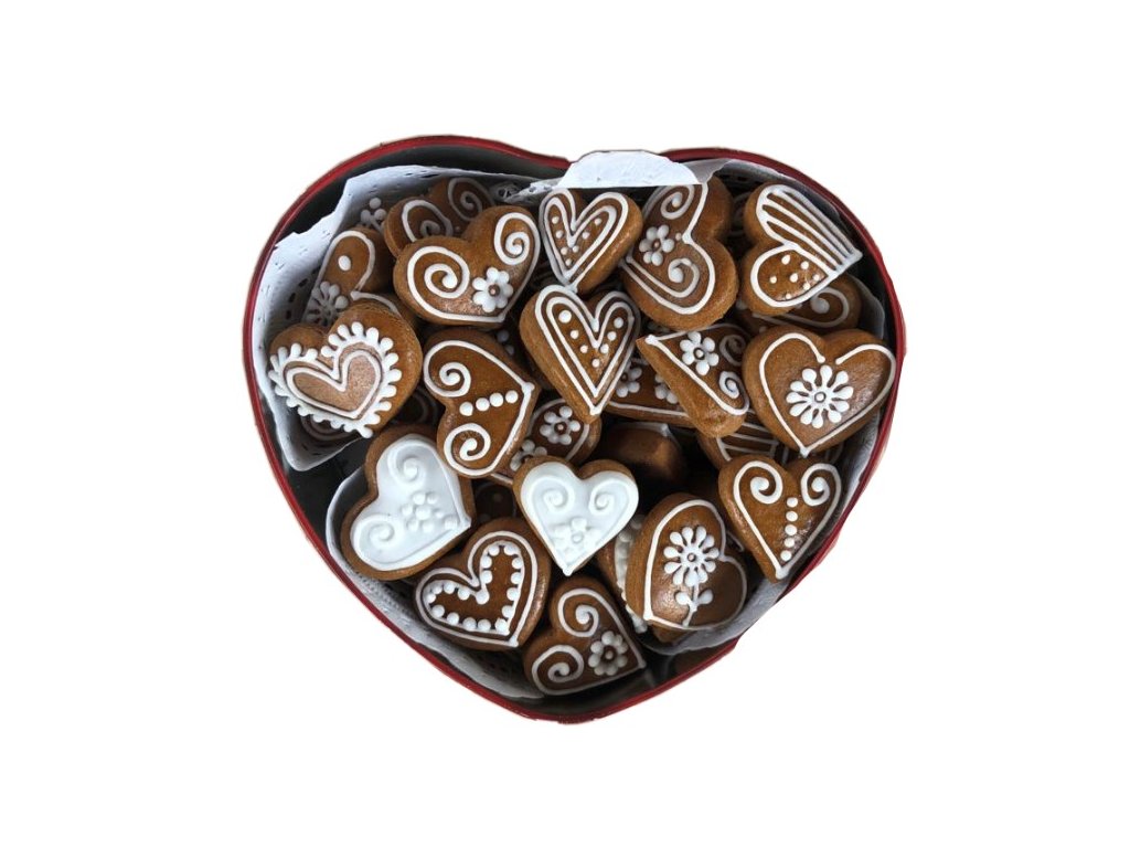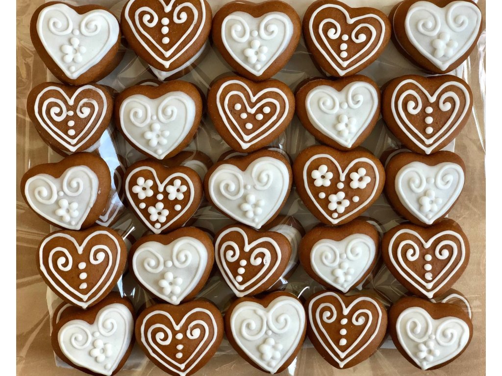 Krabička bílých mini srdíček z perníčku