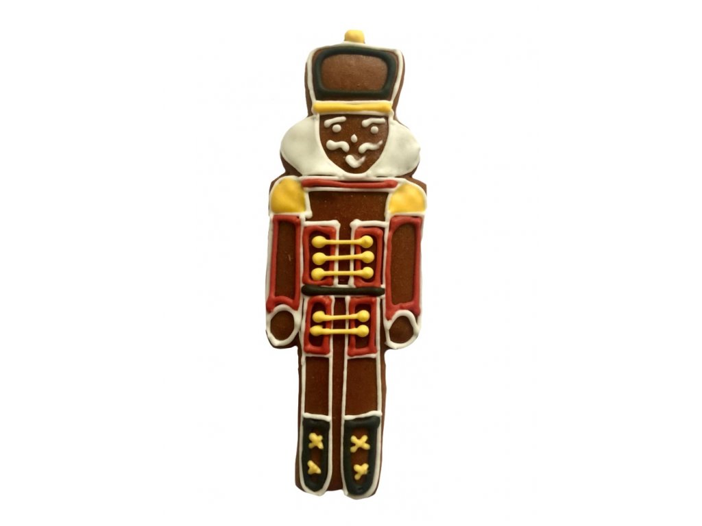 Složení: pšeničná mouka, cukr, med, máslo, vejce, jedlá soda, perníkové koření, kakao, poleva (cukr, bílek, citrónová šťáva, příp. potravinářské barvivo).