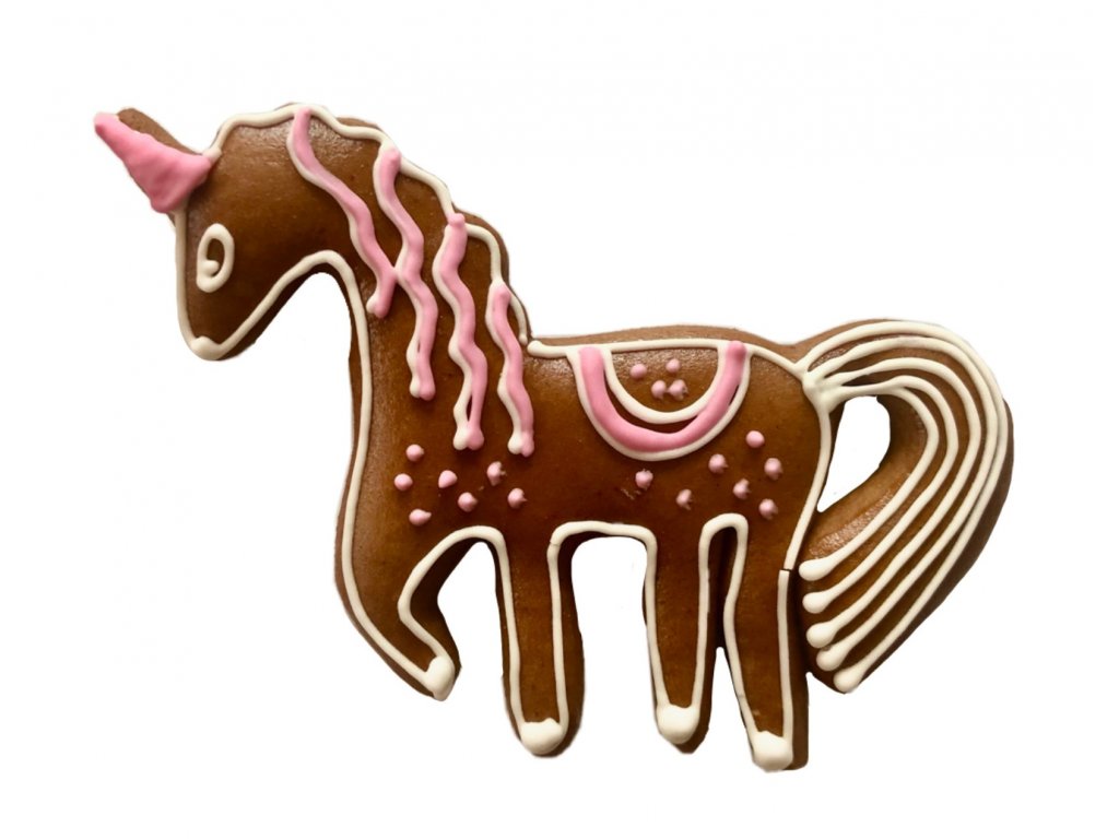 Složení: pšeničná mouka, cukr, med, máslo, vejce, jedlá soda, perníkové koření, kakao, poleva (cukr, bílek, citrónová šťáva, příp. potravinářské barvivo)