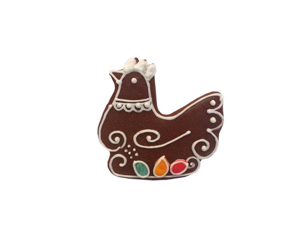 Složení: pšeničná mouka, cukr, med, máslo, vejce, jedlá soda, perníkové koření, kakao, poleva (cukr, bílek, citrónová šťáva, potravinářské barvivo)